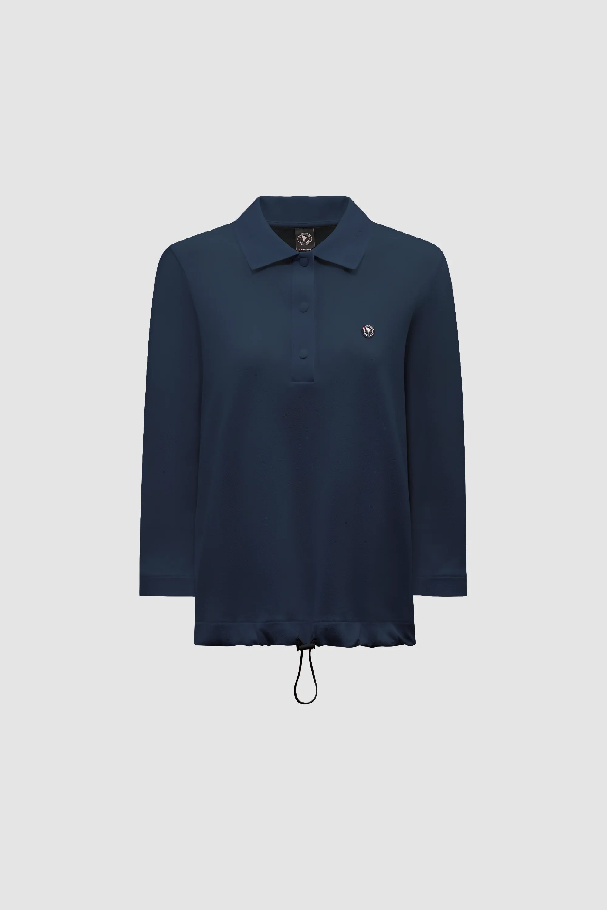 Polo manica 3/4 in piquet tecnico ad alto comfort, leggera ed elasticizzata per la massima libertà di movimento. Asciugatura rapida con trattamento antibatterico e protezione anti-UV, ideale per garantire freschezza e performance durante tutta la giornata. Caratteristici lo scollo a V profondo con bottoni e la coulisse in vita che dona movimento al capo.