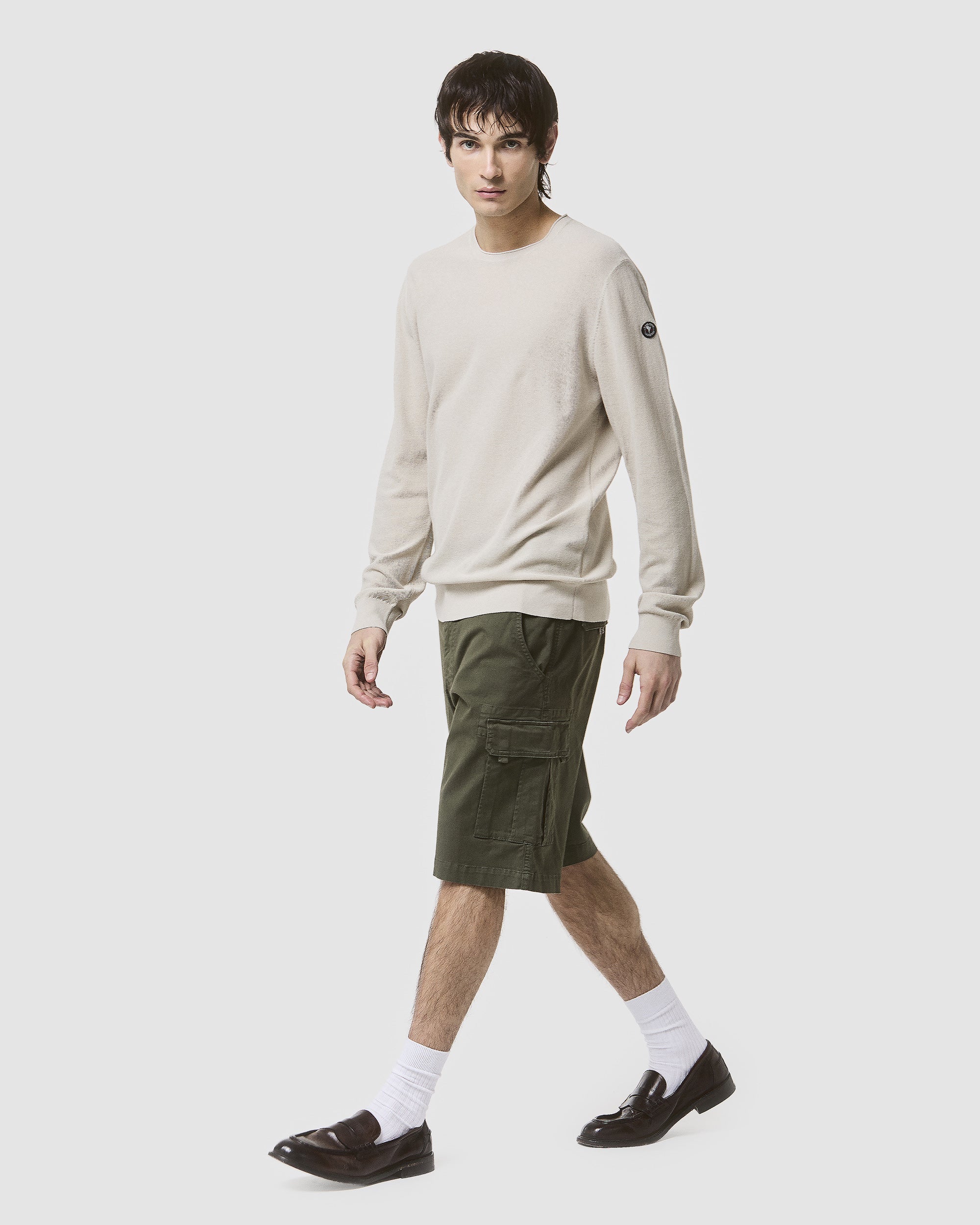 Maglia a manica lunga realizzata in filato 100% cotone tinto filo finezza 14, completamente in punto wafer per un effetto testurizzato unico. Morbida, traspirante e confortevole, garantisce vestibilità perfetta durante tutta la giornata. Un capo versatile e di qualità, ideale da indossare da solo o come base per look a strati casual e curati.