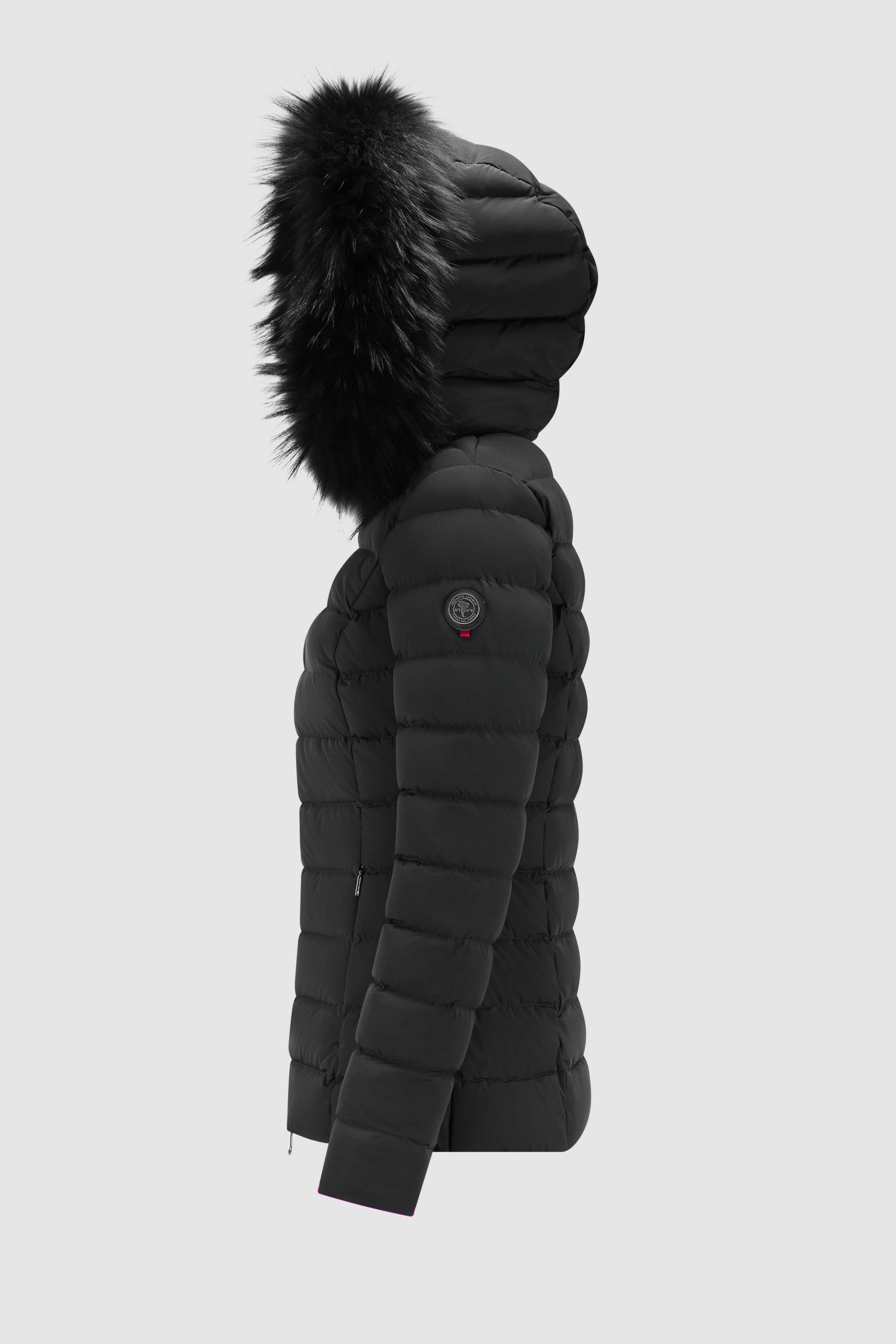 Piumino da donna in tessuto elasticizzato opaco, imbottito in piuma naturale e progettato per garantire protezione fino a -10°C. Cappuccio staccabile con coulisse regolabile e bordo in murmasky removibile, per adattare il look e il livello di protezione in base al clima. Zip frontale a spirale con doppio cursore, tasche laterali con chiusura nascosta e una tasca interna portadocumenti. Trapuntatura regolare e taglio moderno, pensato per muoversi con disinvoltura tra città e stagione invernale.