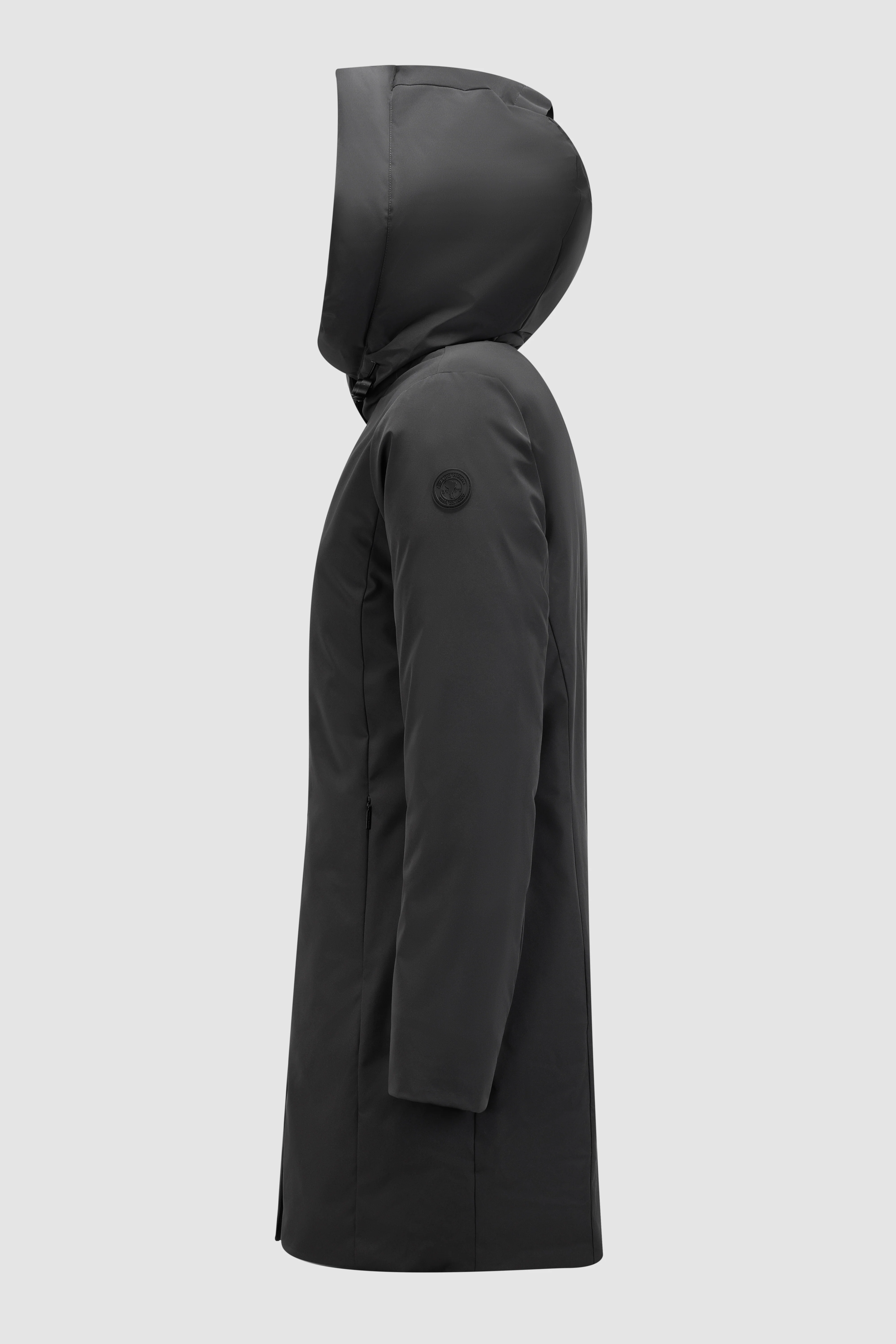 Giacca lunga da donna realizzata in tessuto stretch, ideale per affrontare temperature rigide fino a -10°C. La chiusura frontale è protetta da una pattina con bottoni, sotto cui si trova una zip a doppio cursore dal design discreto. Le tasche laterali sono integrate con zip invisibili, mentre il cappuccio fisso con coulisse permette di adattare la vestibilità in base alle condizioni. Due tasche interne portadocumenti completano un capo progettato per chi cerca praticità, protezione e stile sobrio.