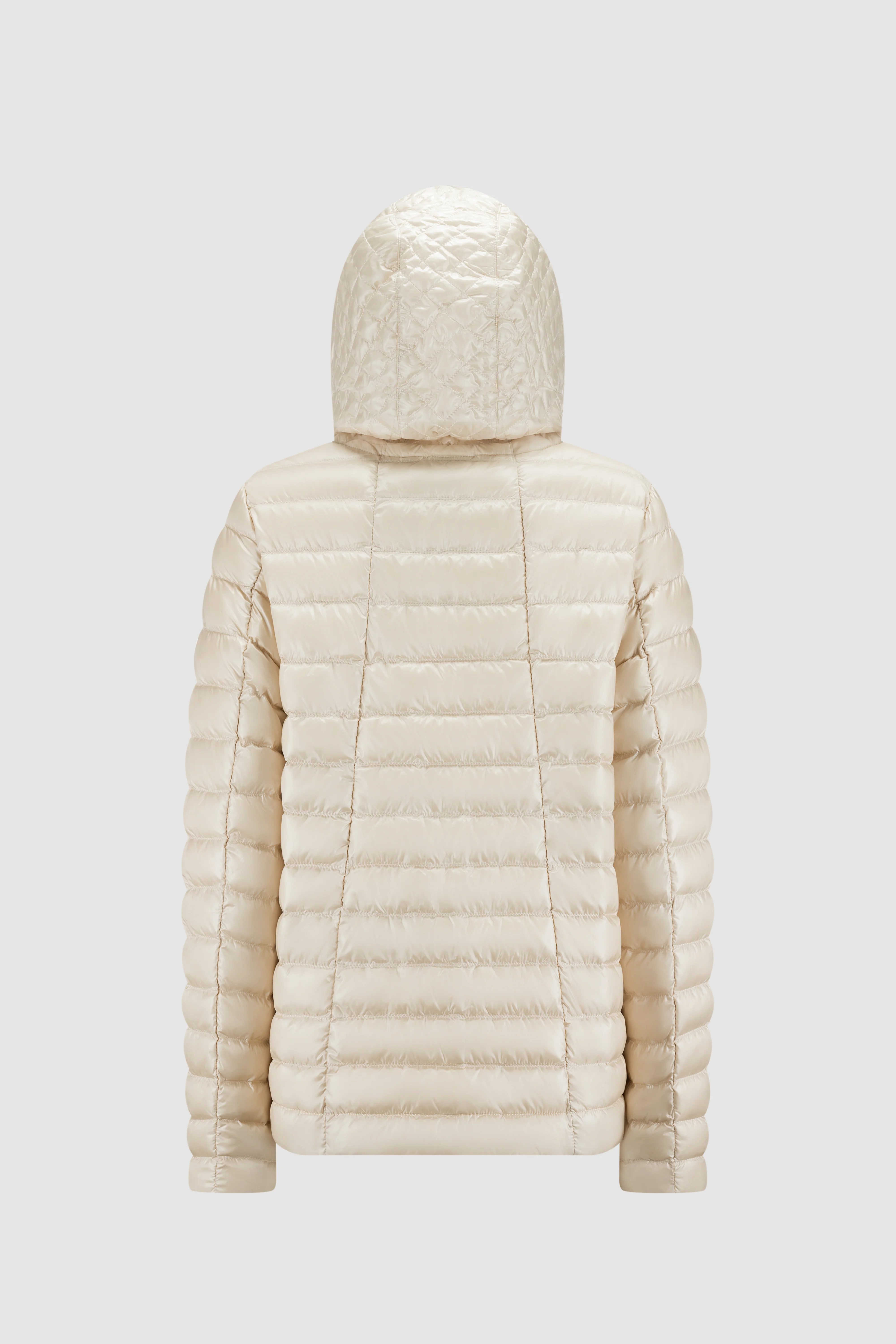 Piumino da donna in tessuto idrorepellente imbottito in piuma naturale con cappuccio staccabile. Cappuccio con trapuntatura particolare. Coulisse regolabile nel cappuccio e nel fondo giacca. Zip a spirale frontale con puller gioiello. Due tasche frontali con chiusura a zip. Tasca interna porta documenti. Serie 100 grammi.